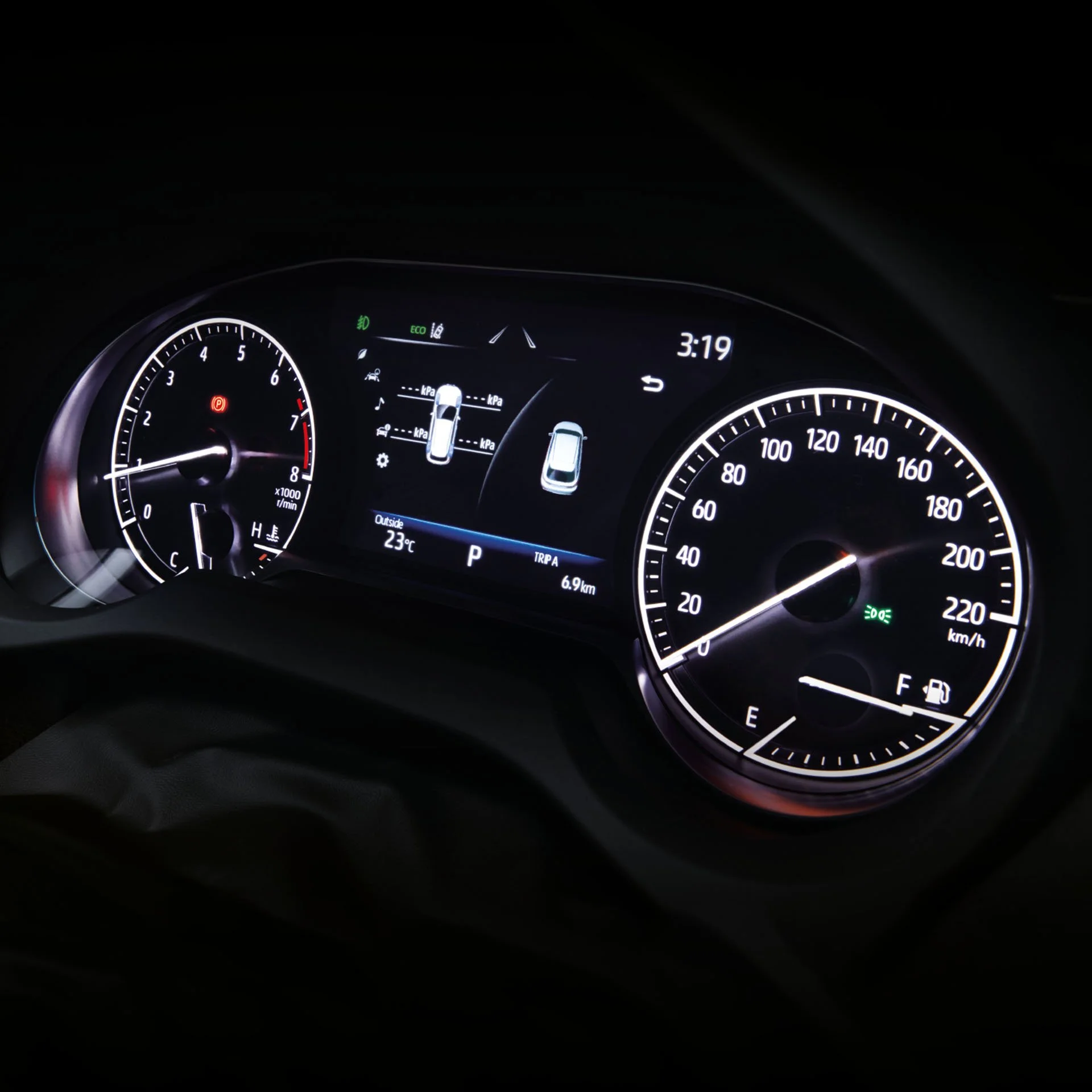 Displays real-time tyre pressure information via multi-information display (MID). Alerts driver when tyre pressure is below the ideal level.