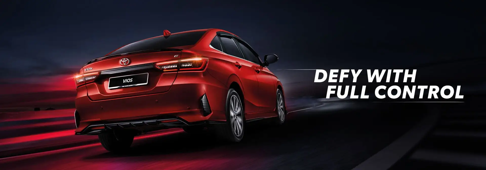 Featuring an imposing front end yet rear biased cabin. With a sporty lowered body yet refined for comfort. It’s not the Vios you know yet it’s unmistakably Vios. Look ahead, not behind. Defy.