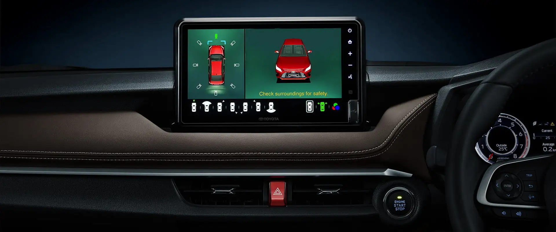 360º view of the vehicle with customised display angles for easy manoeuvring or parking in tight spaces.